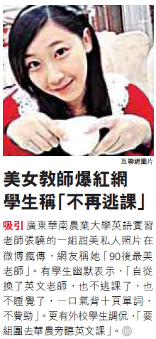 장샤오의 사진을 본 네티즌들은 "단체로 청강을 하러 가야겠다", "이런 선생님이 많으면 영어 시험도 두렵지 않을 것이다" 등의 반응을 보였다.