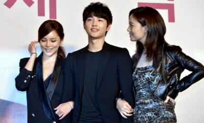 ▲ 【서울=뉴시스】박문호 기자 = 배우 박시연(왼쪽부터), 송중기, 문채원이 5일 오후 서울 강남구 삼성동 인터컨티넨탈 서울 코엑스 하모니볼룸에서 열린 KBS 수목드라마 '세상 어디에도 없는 차칸남자(감독 김진원)' 제작발표회에서 포즈를 취하고 있다.go2@newsis.com