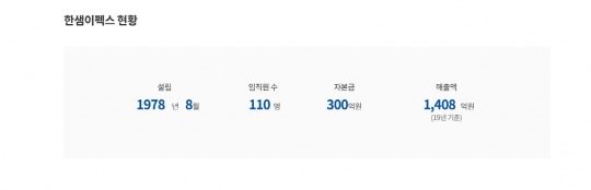 한샘이펙스는 2019년 당시 1408억원의 매출(연결기준)을 기록했다. 사무가구 외에 주방 상판에 주로 쓰는 인조대리석, 주방기기 사업 등을 함께 영위하고 있지만 매출 대부분은 사무가구 분야에서 나온다.