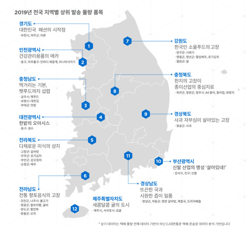 2018~2019년 택배 물량 통해…전국 특산품 한눈