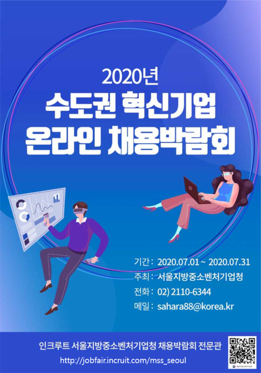 중소벤처기업부 서울지방중소벤처기업청은 인크루트와 함께 이달 31일까지 '2020년 수도권 혁신기업 온라인 채용박람회'를 개최한다고 3일 밝혔다.