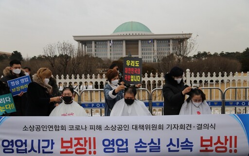 같은 날 오전 소상공인연합회는 국회 앞에서 기자회견을 열고 ▲코로나 피해 업종 소상공인 영업손실 보상 ▲영업손실 보상안 소급 적용 ▲매출 손실액 기준으로 손실 보상 ▲세제감면·무이자 대출·강도 높은 임대료 지원책 마련 ▲대통령 긴급재정명령 발동 등 피해 소상공인에 대한 '영업손실 보상 5대 요구사항'을 정부와 국회에 촉구했다.