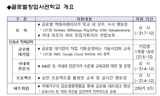 '글로벌 창업사관학교'는 혁신기술 분야에서 유망 창업 아이템을 갖춘 창업기업에게 글로벌 대기업과 국내외 전문가의 기술 노하우를 전수하고, 글로벌 창업기획자의 액셀러레이팅과 해외 네트워킹과 사업화 자금 등을 일괄 지원하는 사업으로 지난해 처음으로 1기를 운영했다.