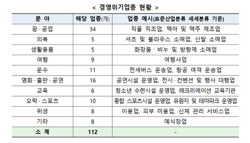 112개 경영위기업종 선정, 매출 감소 따라 200만~300만원