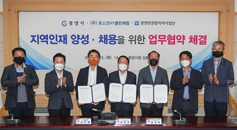 광양시는 ㈜포스코HY클린메탈, 광양만권일자리사업단과 '지역인재 양성과 채용을 위한 업무협약'을 체결했다.