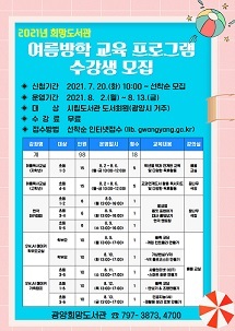 모든 강좌는 방역 지침을 준수하며 교육 효과를 높이기 위해 10명씩 소규모로 진행되고, 참여자는 7월 20일부터 도서관 홈페이지에서 선착순 신청받는다.