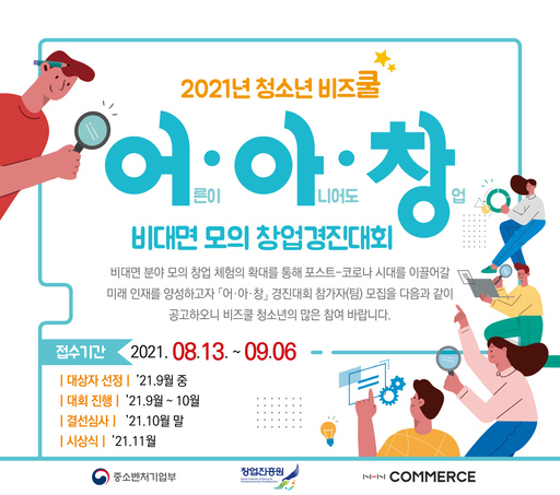 16일 창진원에 따르면 '어·아·창 경진대회'는 창업진흥원이 NHN커머스와 협업해 청소년 비즈쿨 학생 대상으로 전자상거래 교육을 진행해 아이템을 고도화하고 쇼핑몰을 제작, 운영한 뒤 우수팀을 최종 선발하는 프로그램이다.