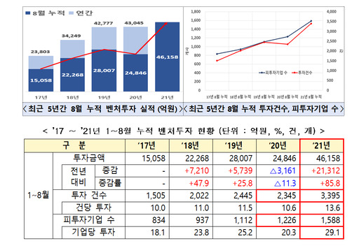 올해 들어 8월 말을 기준으로 하더라도 벤처투자 규모가 '사상 최고'를 기록한 지난해 수준을 훌쩍 넘어서면다.