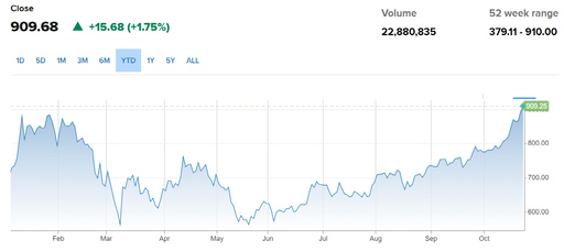 테슬라, 장중 910달러 돌파하며 신고가 경신