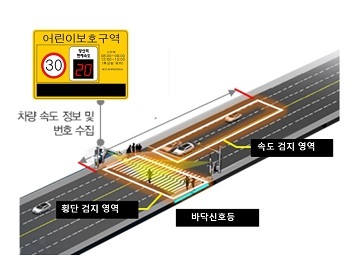 LED 바닥신호등이 설치되고 보행신호 등을 음성으로 안내하며 보행자를 인식하고 차량경고 LED 전광판도 설치된다.