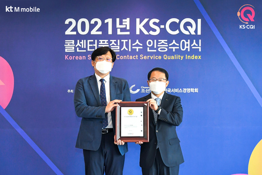 국내 알뜰폰 1위 기업 KT엠모바일은 한국표준협회가 주관하는 '2021년 콜센터품질지수(KS-CQ)' 조사에서 3년 연속 알뜰폰 부문 1위로 선정됐다고 28일 밝혔다.