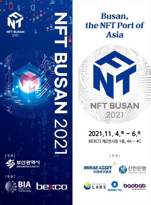 부산시(시장 박형준)는 오는 4일부터 6일까지 벡스코(해운대구)에서 'NFT BUSAN 2021'을 개최한다고 밝혔다.