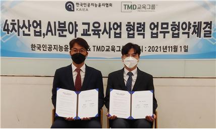한국인공지능윤리협회(KAIEA)와 TMD교육그룹은 '4차산업혁명, 인공지능(AI) 분야의 교육 사업 협력을 위한 업무협약'을 체결했다고 8일 밝혔다.