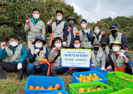 기술보증기금 임직원들이 가을 수확철을 맞아 일손이 부족한 경남 김해시 진영읍 소재 과수농가를 찾아 '감 따기 농촌 봉사활동'을 펼쳤다.