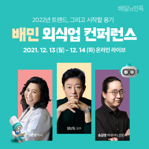 특히 이번 컨퍼런스에서는 배달의민족 담당자들이 직접 출연해 배달 통계 분석, 배민아카데미 교육 현장에서 겪은 사장님들의 고민, 밀키트 성공 방식 등에 대해 이야기하는 '배민인사이트' 시간도 마련된다.