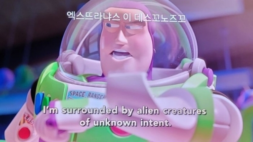 또 '토이스토리3'에서는 버즈가 한 대사 중 "엘스뜨라냐스 이 데스꼬노즈꼬"라는 스페인어 발음이 그대로 한글 자막으로 달렸는데, 사실은 "알 수 없는 외계 생명체로부터 둘러싸였다"고 말한 것을 제대로 번역하지 못한 것이다.