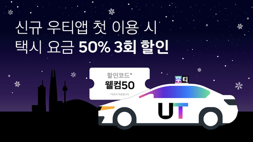 UT는 이달부터 UT 택시를 처음 이용하는 승객을 위해 총 3회 최대 1만원까지 50% 할인 프로모션을 제공한다. UT 택시 첫 탑승 승객은 UT 앱을 다운로드받고 웰컴50 할인코드를 입력하면 할인 혜택을 받을 수 있다.