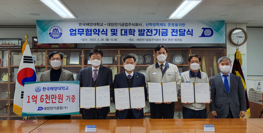 한국해양대학교는 지난 28일 대양전기공업주식회사와 미래선박 분야 우수 인재 육성을 위한 업무협약을 맺었다고 29일 밝혔다.