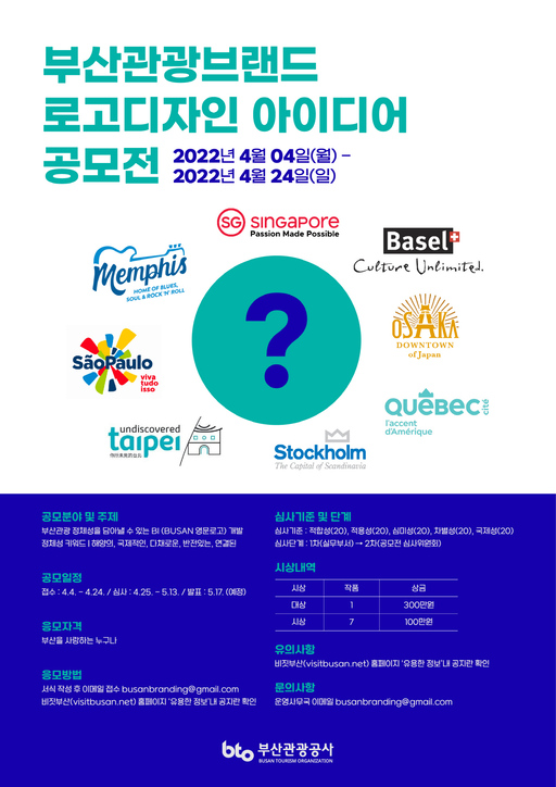이번 로고 디자인 아이디어 공모는 부산관광 브랜드 아이덴티티(BI) 개발의 하나로 진행되는 것이다. 공모 기간은 4일부터 24일까지이며, 부산을 사랑하는 누구나 참여할 수 있다.