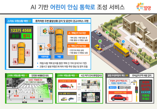 시는 'AI 기반 어린이 안심 통학로 조성 서비스' 실시로 교통 약자들이 안심하고 살 수 있는 밀양을 구현하기 위해 실시간 위험 상황을 인지하는 교통안전 시스템 구축을 목표로 한다