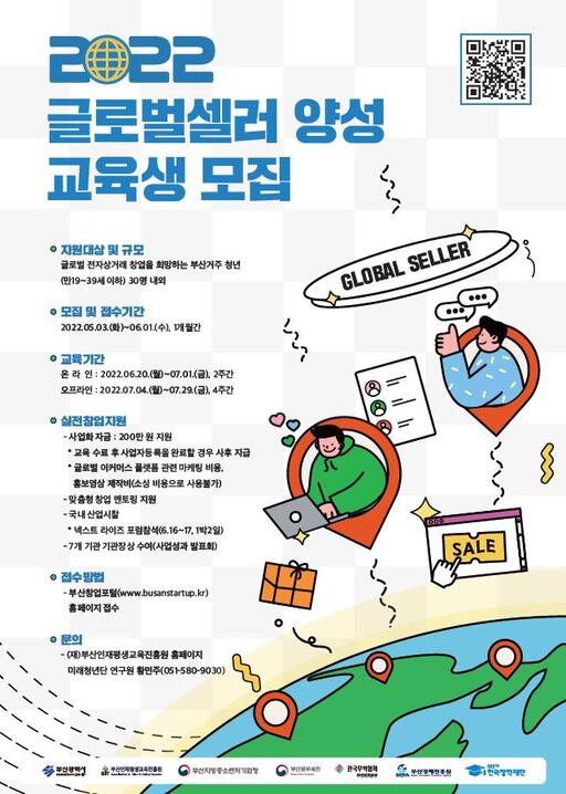 부산시는 인재양성 전문기관인 부산인재평생교육진흥원(이하 인평원)과 함께 해외 전자상거래 청년 창업가 양성을 위한 '글로벌 셀러 양성사업' 참여자를 오는 6월 1일까지 모집한다고 밝혔다.