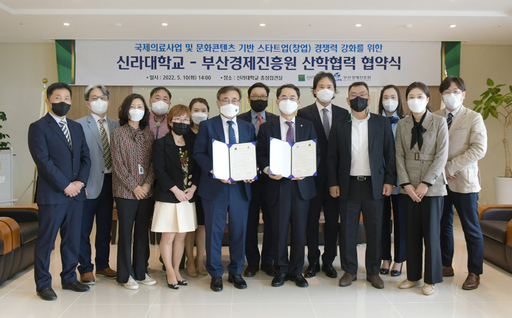 신라대학교가 의료관광 및 문화콘텐츠 기반 스타트업(창업) 경쟁력 강화를 위해 부산경제진흥원과 산학 협약을 체결했다.