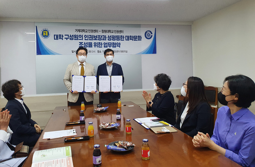 이장희 창원대 인권센터장과 양성률 거제대 인권센터장은 "이번 협약을 통해 양 대학은 물론 지역공동체의 인권의식 향상에 기여하는 지역 대학의 공공성·책무성을 함께 수행해 나갈 것"이라고 말했다.