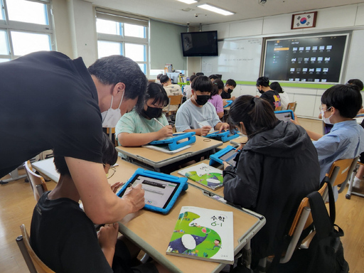 이날 수업공개에서 교사는 스스로 교육과정을 분석해 다양한 온라인 콘텐츠를 직접 만들어 제공하고, 학생은 친구들과 함께 태블릿PC를 이용해 주어진 문제를 즐겁게 해결하는 과정을 볼 수 있었다.