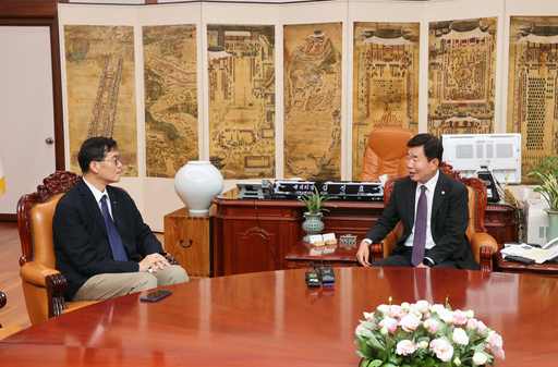 김 의장은 20일 오후 국회 의장집무실에서 이 총재를 접견하고 "지금과 같은 위기 상황일수록 한국은행과 기획재정부, 금융위원회 간 회의를 더욱 활성화시켜야 한다"며 이같이 말했다.