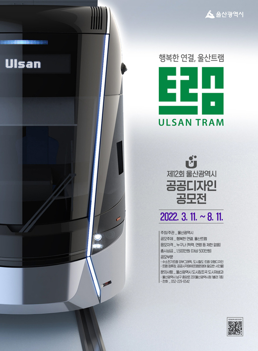 울산시는 8월 9일부터 11일까지 사흘간 '행복한 연결, 울산 트램'을 주제로 '제12회 울산광역시 공공디자인 공모전'의 작품을 접수한다고 밝혔다.