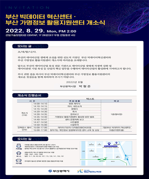 시는 '부산 빅데이터 혁신센터' 외에도 개인정보보호위원회 공모사업인 '지역 가명정보 활용지원센터' 유치에 성공하여 혁신센터와 함께 관련 업무를 시작한다.