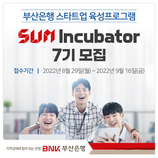 BNK부산은행은 29일 지역 스타트업 육성 프로그램인 '썸 인큐베이터(SUM Incubator)' 7기를 모집한다고 29일 밝혔다.
