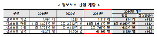 정보보호 산업은 코로나19와 같은 악조건 속에서도 최근 3년간 11.3%의 연평균 성장률을 달성했다.