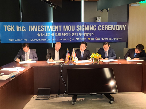 현지시각 21일에는 미국 캔자스시티에서 솔라시도 재생에너지 글로벌 데이터센터 투자협약식이 열렸다.