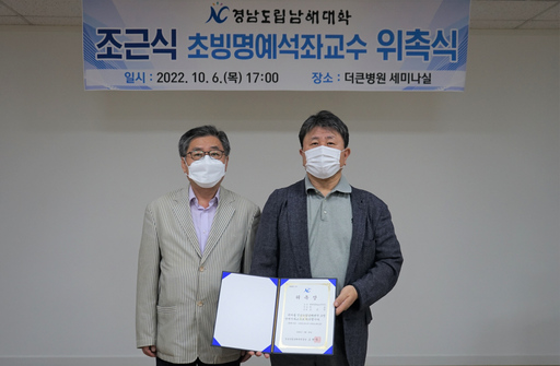 경남도립남해대학이 6일 창원 더큰약국 조근식 약사를 초빙명예석좌교수로 임명했다.