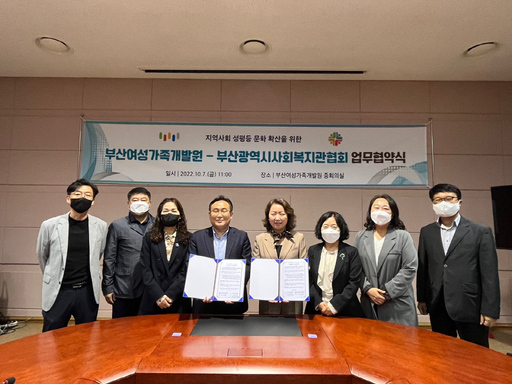 부산여성가족개발원은 지난 7일 부산광역시사회복지관협회와 지역 사회 성평등 문화 확산을 위한 업무협약을 체결했다고 14일 밝혔다.