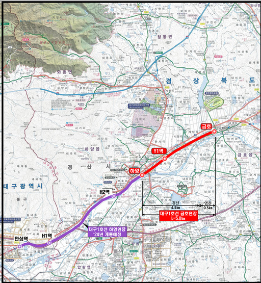 대구1호선 하양~영천(금호)연장은 총 사업비 2052억원으로 5.0㎞ 구간을 건설하는 사업이며, 2024년 12월에 완공 예정인 안심~하양 구간의 도시철도 1호선연장 사업과도 연결된다. 경북도는 이번 사업이 청년인재 유입, 일자리 창출, 지역경제 및 관광활성화 등의 상승효과를 가져올 대구, 경산, 영천 인근 일대의 광역 교통 혁명으로 기대하고 있다. 향후 기획재정부의 내부 심사를 거쳐 빠른 시일 내 예비타당성조사 진행 여부가 결정될 전망이다.