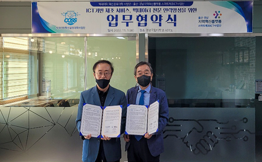 경남대학교 울산·경남지역혁신플랫폼 스마트제조ICT사업단은 지난 1일 오전 11시 경상국립대 빅데이터 혁신공유대학 사업단과 스마트제조ICT 및 빅데이터 관련 전문 인력양성을 위한 업무 협약을 체결했다.