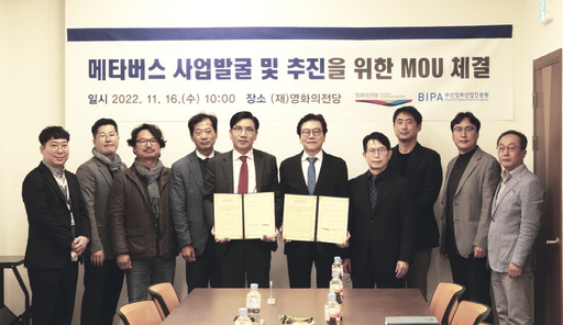 부산정보산업진흥원(BIPA, 이하 진흥원)은 영화의전당과 부산 메타버스 산업 생태계 조성을 위해 지난 16일 '부산지역 메타버스 산업육성'을 위한 업무협약(MOU)을 체결했다.