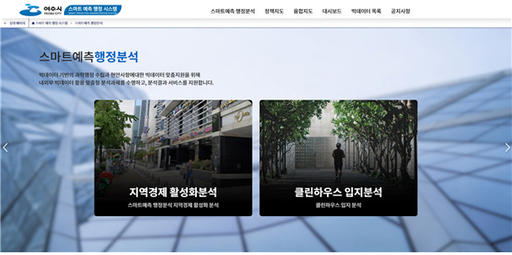 '스마트 예측행정시스템'은 여수시의 맞춤 데이터와 지도를 융합한 정책지도를 말하며, 사회 경제 및 시정현황 등 다양한 분야에서 분석 자료로 활용될 수 있다.