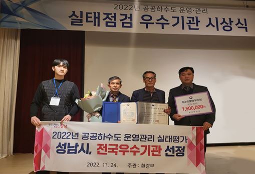 성남시(시장 신상진)는 환경부가 시행한 '2022년 공공 하수도 운영·관리 실태평가'에서 Ⅰ그룹(인구 30만 이상)에서 2년 연속 우수기관으로 선정돼 인증패와 750만 원의 포상금을 받았다고 25일 밝혔다.