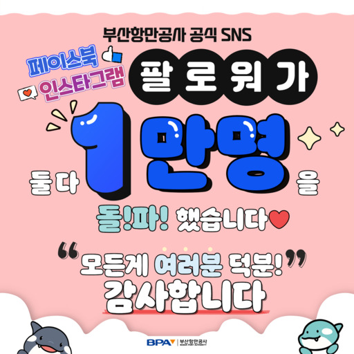 부산항만공사(BPA)는 BPA 공식 SNS 4개 채널 가운데 페이스북과 인스타그램 구독자가 각각 1만명을 넘어섰다.