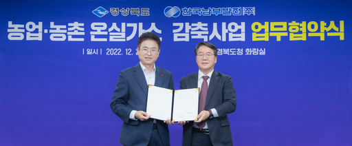 남부발전은 지난 28일 안동 풍천면 경북도청에서 '농업·농촌분야 온실가스 배출 감축을 위한 업무협약'을 체결했다고 밝혔다.