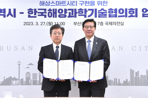 부산시는 27일 오전 11시 시청 7층 국제의전실에서 한국해양과학기술협의회와 해양스마트시티 구현을 위한 업무 협약을 체결했다고 밝혔다.