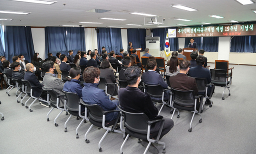 '세계최고 물류·비즈니스 중심 실현'을 비전으로 문을 연 부산진해경제자유구역청(이하 경자청)이 청사 5층 대회의실에서 개청 19주년 기념행사를 개최했다.