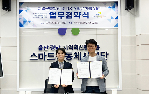 울산·경남지역혁신플랫폼 스마트공동체사업단 스마트도시건설연구센터(이하 연구센터)는 지난 10일 LH지역균형발전센터와 지역주도 균형발전과 지역 맞춤형 연구개발을 위한 상호협력을 체결했다.