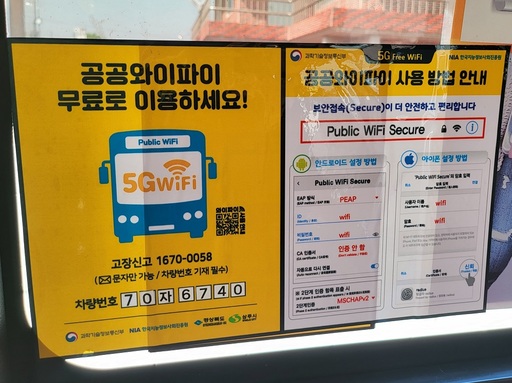 시내버스 공공와이파이를 이용하려면 휴대전화 와이파이 목록에서 'Public WiFi Free' 또는 'Public WiFi Secure'를 선택하면 된다.