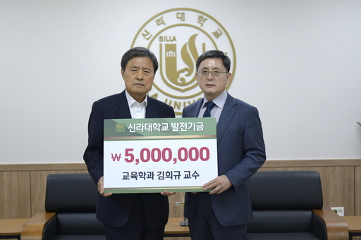 신라대학교는 교육학과 김희규 교수가 대학발전기금으로 500만원을 기탁했다고 24일 밝혔다.