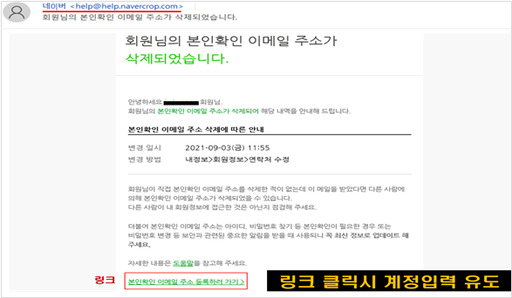 발신자 메일주소도 'naver'를 'navor'로, 'daum'을 'daurn'로 표기하는 등 메일 수신자의 오인(誤認)을 유도했다.