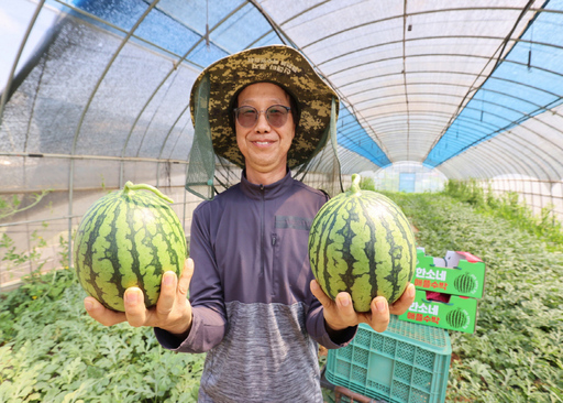 작지만 야무진 맛, 한손에 들어오는 해남 애플수박이 본격 출하되고 있다.
